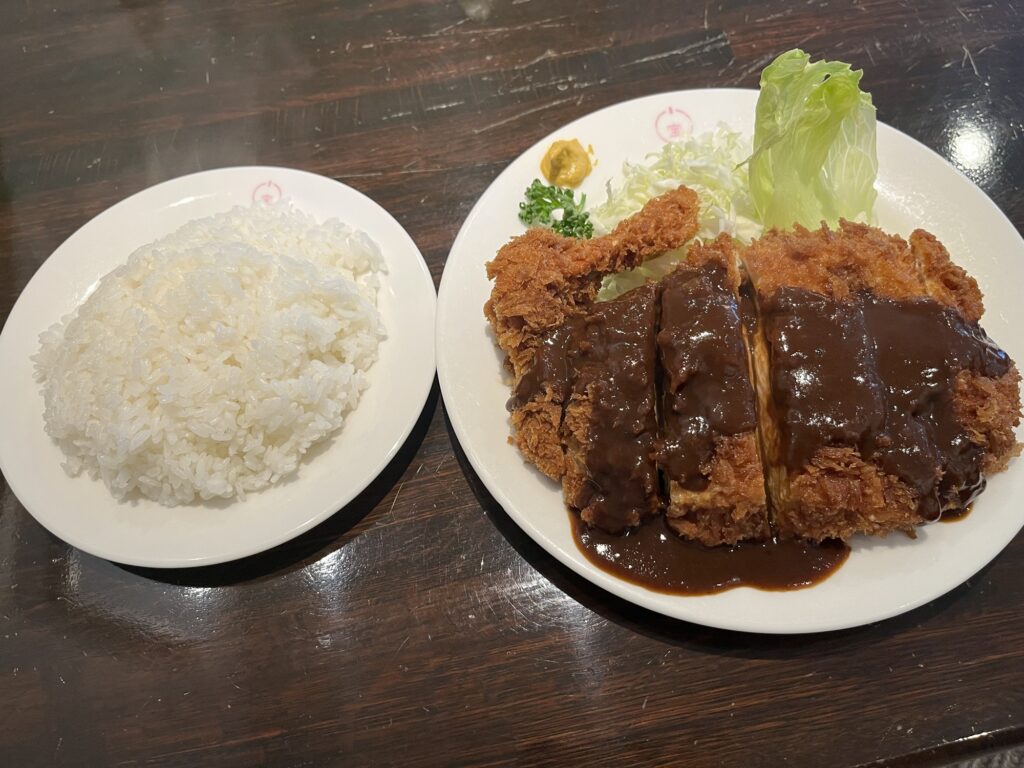 それが……チキンカツがテーブルにきた瞬間驚きました。想像していた3倍くらい大きいです!ちなみにチキンカツは、オムライスのようにサイズは選べません。
