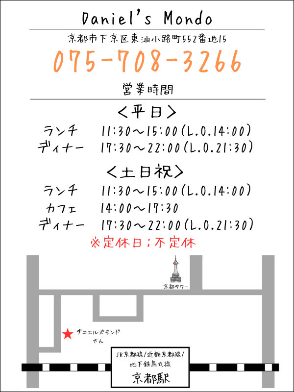 京都駅から徒歩5分の場所にあるDaniel’s Mondo(ダニエルズモンド)さんに伺いました。