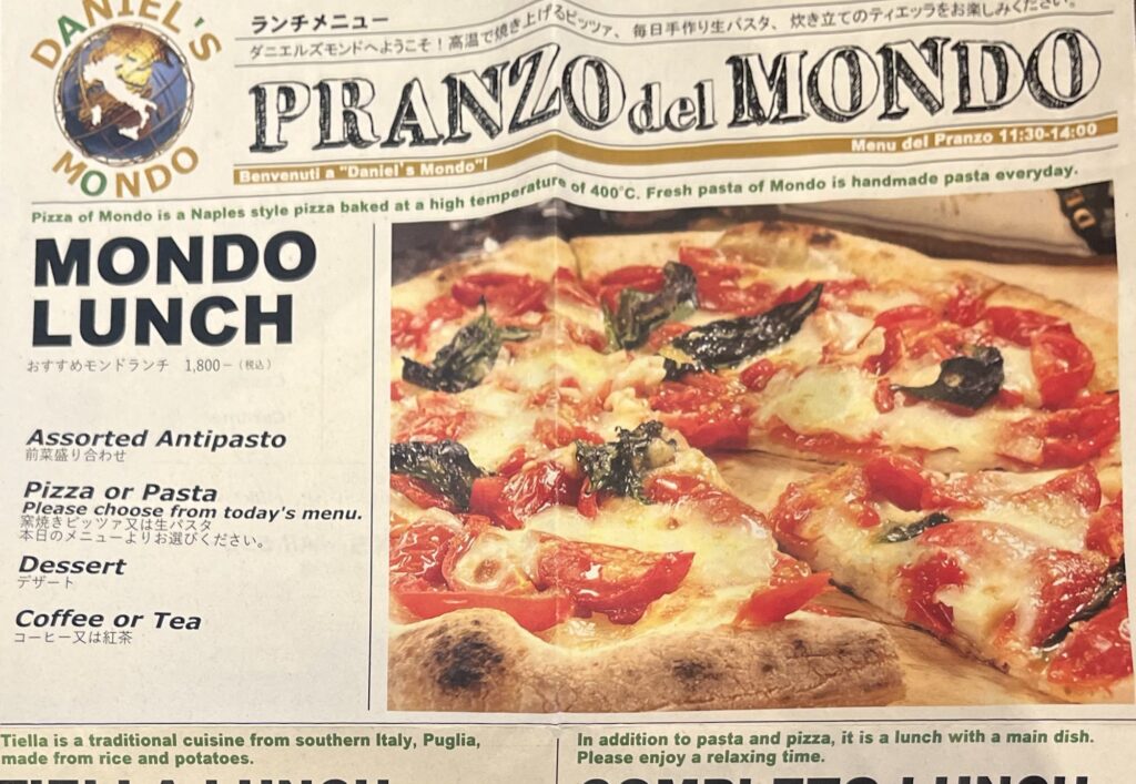 今回はメインが生パスタか窯焼きピザのどちらかを選べるモンドランチをいただきました。
