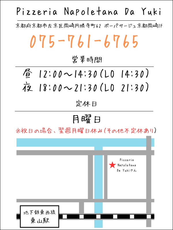 地下鉄東山駅から徒歩5分ほどの場所にあるPizzeria Napoletana Da Yuki(ピッツェリア ナポレターナ ダ ユウキ)さんに伺いました。