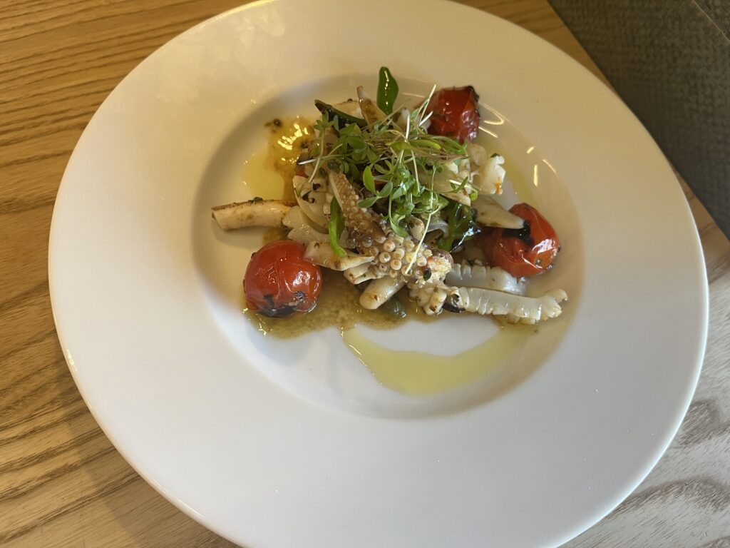 アオリイカの軽いグリルというメニュー名前通り、イカは軽く火が入っているだけですごく柔らかかったです。さっぱりした味でした。
