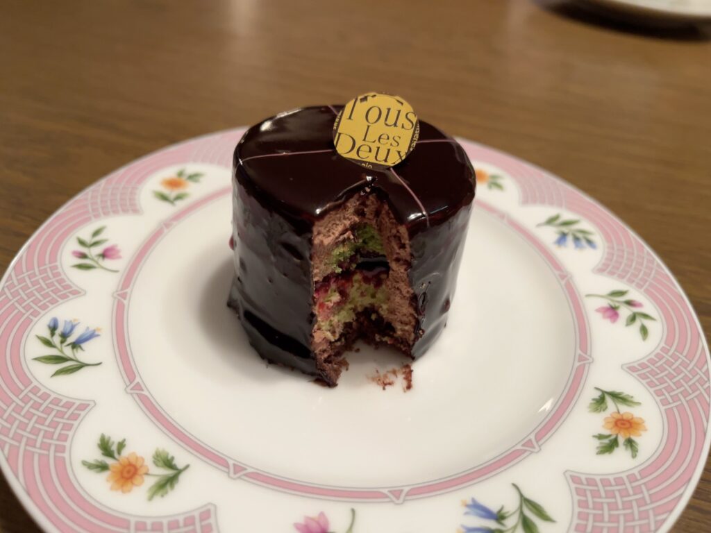 ベルナッションはチョコレートムースとたっぷりのピスタチオ、そしてベリーも入っている大人の味です。