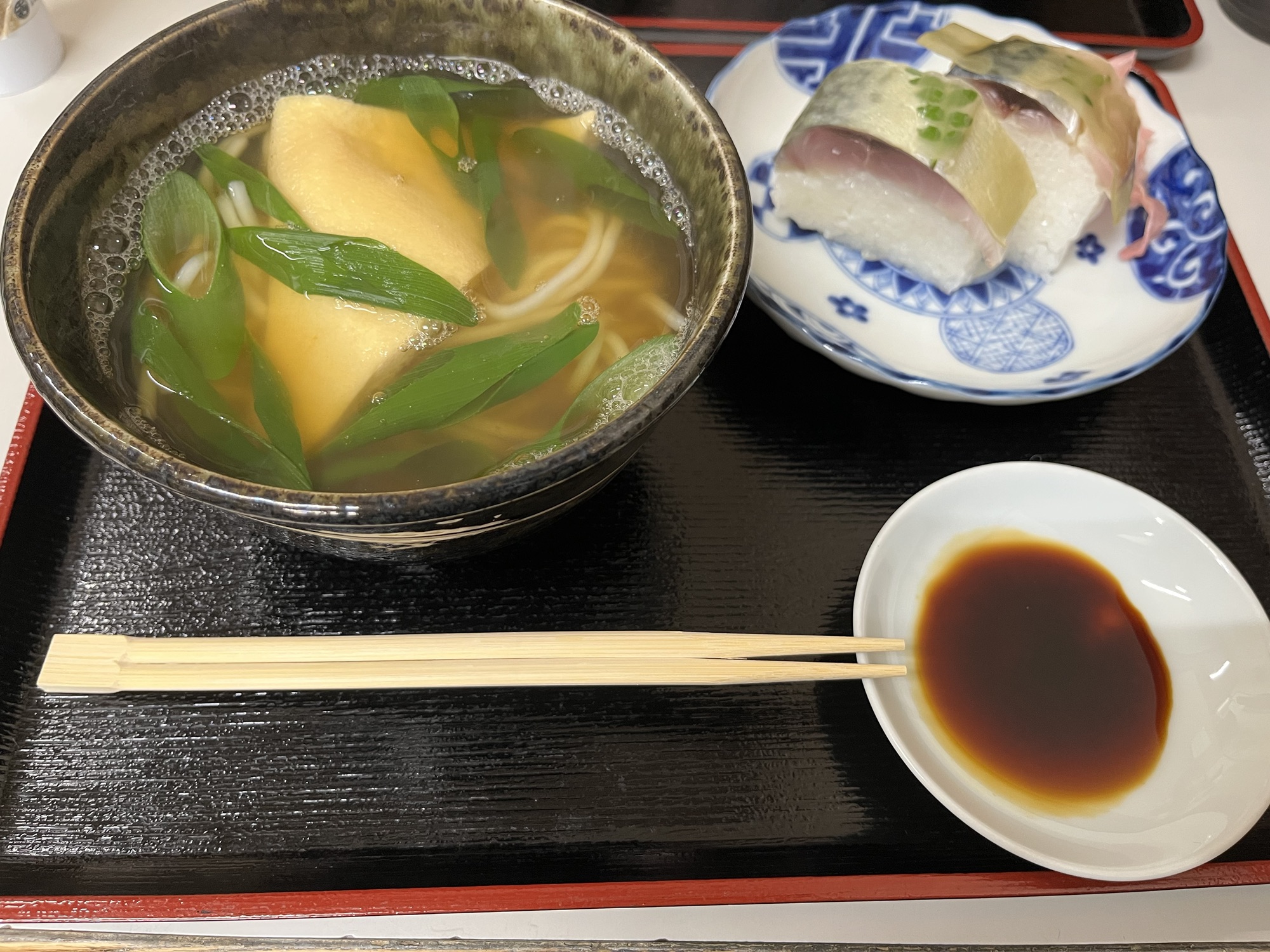 満寿形屋さんの鯖寿司きつねうどんセット、私のオススめしです。