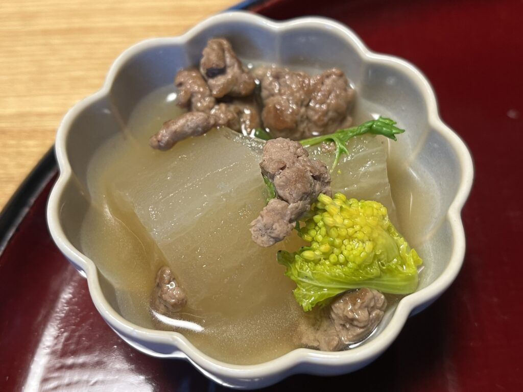 小鉢は大根の煮物とキムチ、あとお味噌汁が付いてきます。